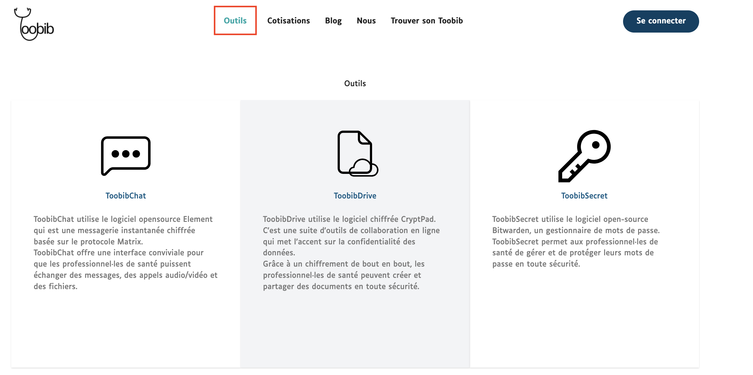 Rendez-vous sur toobib.org, et cliquer sur l'onglet outils.